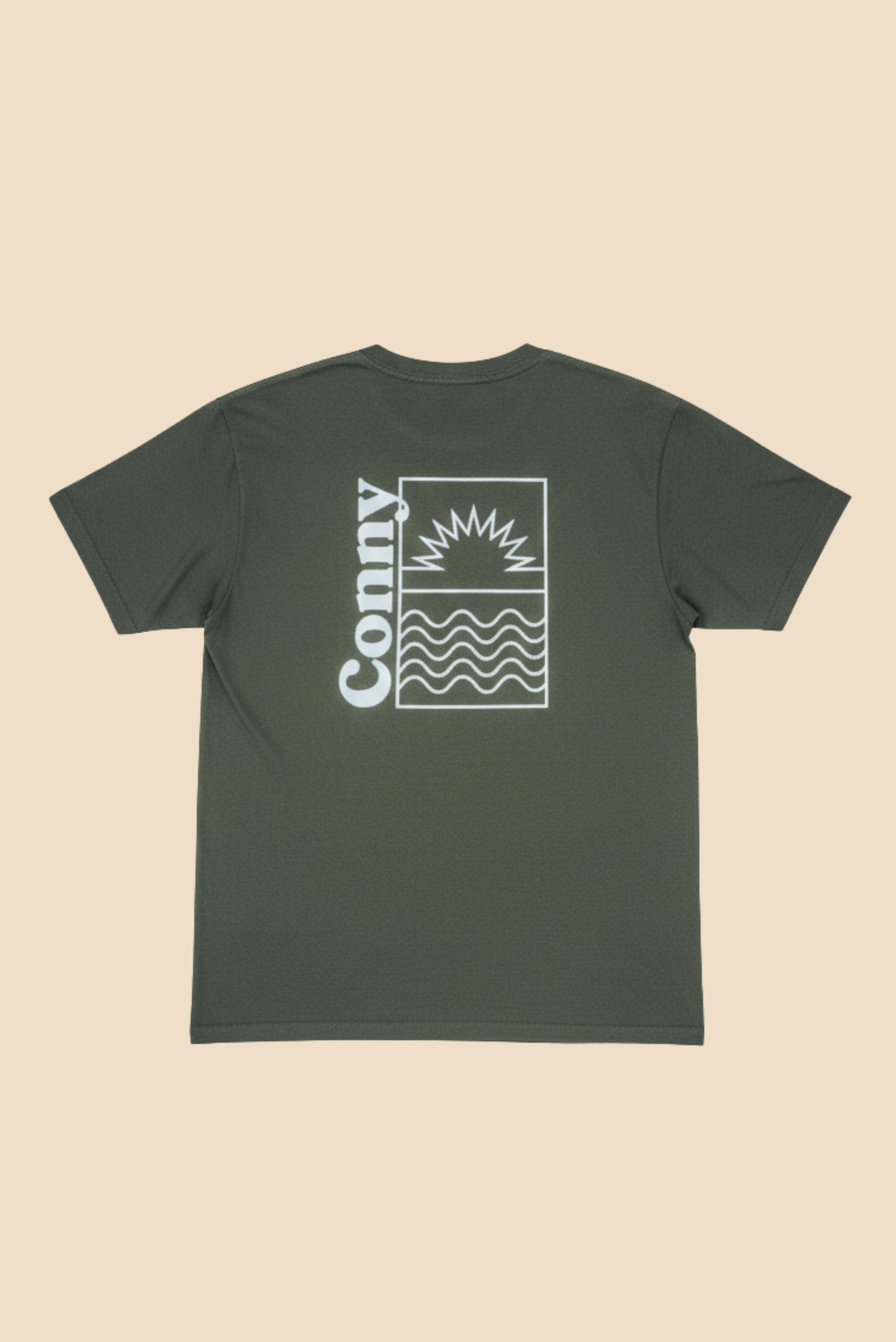 Adopte un look décontracté avec ce tee shirt kaki oversize, imprimé d'une illustration légère qui reflète l'évasion. Confort, style et originalité réunis dans une pièce unique.